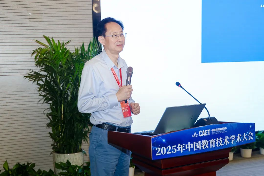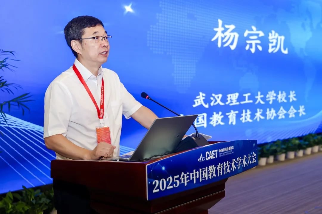 杨宗凯会长对2025年中国教育技术学术大会的召开表示热烈祝贺,并向与会的领导、专家、企业代表及国际友人致以诚挚问候和崇高敬意。杨会长表示,大会以“人工智能赋能教育强国建设”为主题,是对国家战略的积极响应,更是对教育未来命题的深度求解。杨会长传达了世界数字教育大会的精神,重点解读了《中国智慧教育白皮书》,并对未来教育发展提出“三个新”(新阶段、新标准、新路径)和“四个未来”(未来教师、未来课堂、未来学习中心、未来学校)的展望。最后,杨会长预祝2025年中国教育技术学术大会圆满成功。